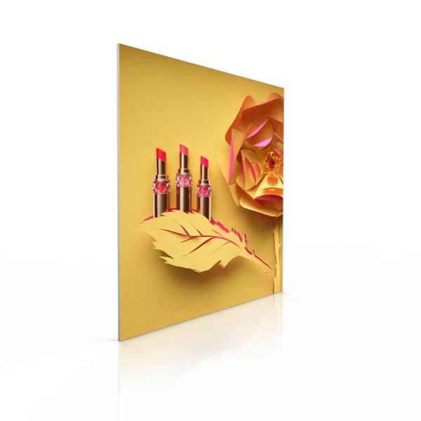 The edgeless (frameless) look is achieved by using fabric which is sewn along the edges with a silicone beading. The graphic is stretched slightly over the extrusion where the silicon beading fits into a channel grove along the outer edge of the display.
